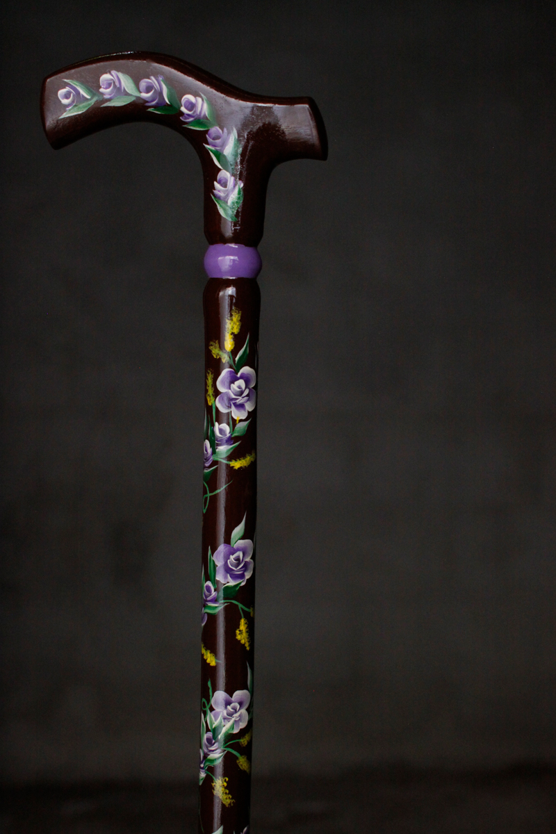 珍しい焦げ茶色をベースにすみれの花を描いています